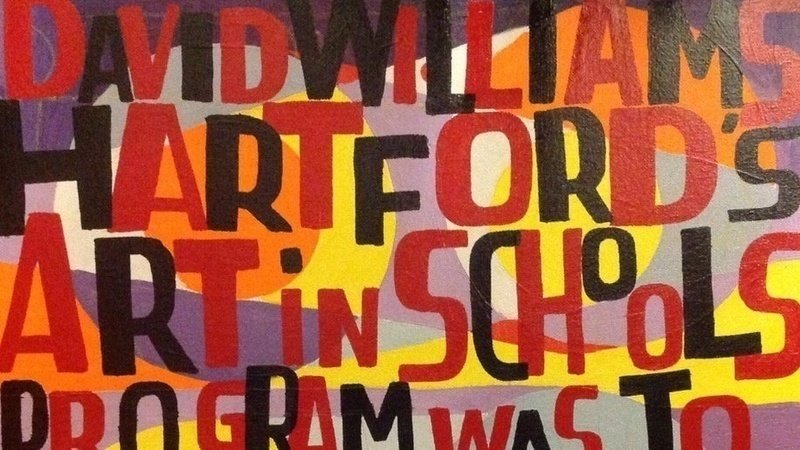 The image shows Bob and Roberta Smith's fantastic latest message to David Williams, Leader of Hertfordshire County Council - 'David Williams Hartford's Art in Schools Program was to inspire children not for you to sell.'