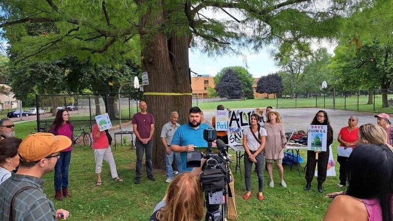 The Friends of Cudell Commons Park group is having a press conference on Tuesday, October 24th, 4pm in the Northeast corner of Cudell Commons Park near the Bald Cypress Tree to introduce the public to Gail Lundberg, heir to Frank and Emma Cudell. Gail will read a statement she prepared denouncing the City's Plans that ignore her relatives’ wishes and will be available for questions.