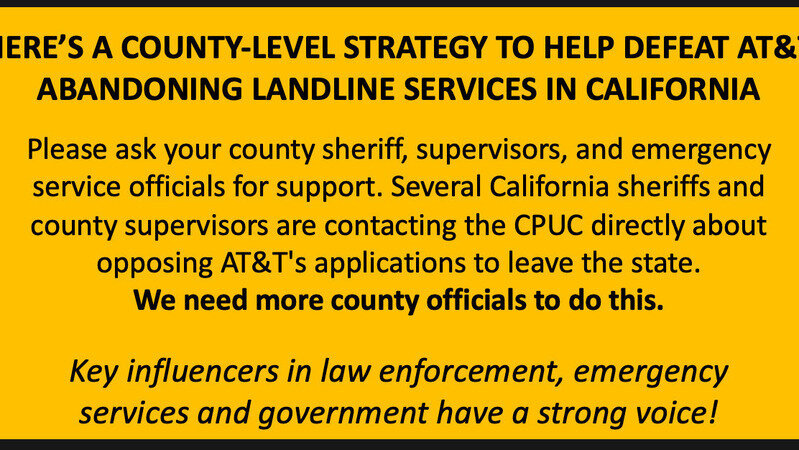 Petition updateSAVE Landline Service in California!Please reach out to your county influencers and ask for their support. Thanks.