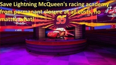 Next month (somewhere between the first week & last week of next month itself), Lightning McQueen's racing academy (An attraction at Disney Hollywood studios) will be closing down on October 7th 2024, permanantly. If the attraction itself closes permanantly, many fans of the Disney Pixar Cars franchise will be saddened & devastated. If it's saved (maybe instantly), many Disney Pixar Cars fans will flock by Lightning McQueen's racing academy for many years to come. So, I believe that many people (whoever signs this petition immediatly) may wanna work fast, before the day of it's permanant closure.