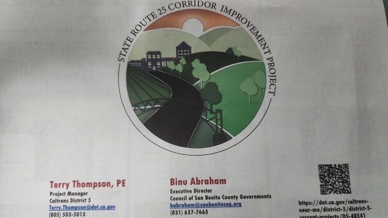 Comments and concerns about the Highway 25 project can be sent to Dianna at dianna.beck@dot.ca.gov until December 12th. They are moving forward with widening 25 now that they have the funding. The project manager is Terry Thompson, Terry.Thompson@dot.ca.gov.