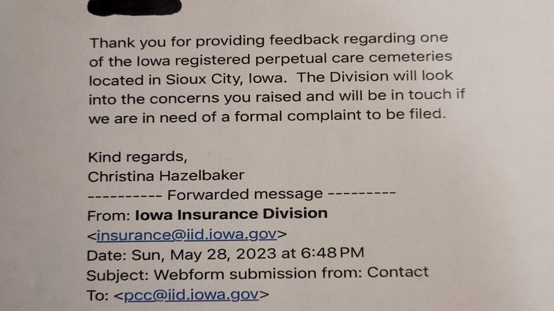 Petition update"Save Memorial Park Cemetery" Lilly H. Donohue CEO Corporate Office