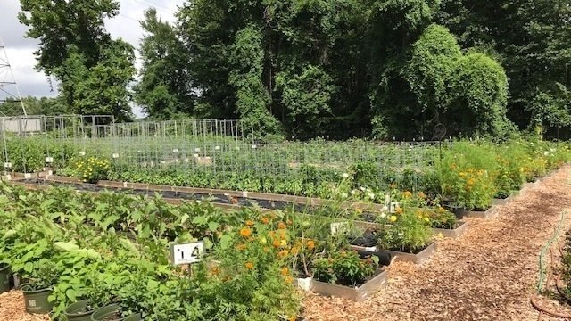 Our fields have 75 raised beds filled with healthy natural soil and natural fertilizing methods are used. Our combination of flower beds and companion planting techniques gives us a healthy balance. The farm was created by just a few volunteers giving the community fresh vegetables each week. All our income goes to The Cedar Grove Historical Society.