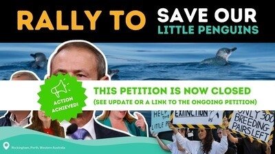 Sign our petition and tell Minister Whitby, as well as local Rockingham state member Magenta Marshall, Premier Roger Cook, Tourism Minister Rita Saffioti, and federal member for Brand Madeleine King, that for the sake of our little penguins, the proposal to construct a boardwalk over an area of high-quality penguin nesting habitat must be stopped immediately. Plans for the new boardwalk across this high-quality nesting habitat presents too much of a risk to the penguin colony.