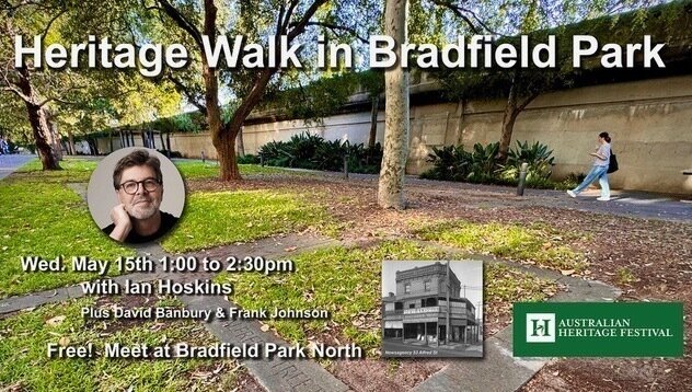 Dear Supporters, we have a big week - a crucial meeting of North Sydney Council on Monday night, updates for the Friends of Bradfield Park as well as the Heritage Walk through Bradfield Park North on Wed May 15th, at 1-2.40 pm. Free to all, the Heritage Walk will feature our local historian Dr Ian Hoskins, David Banbury, so involved with the preservation and appreciation of our public realm, and Frank Johnson of Engineers Australia Sydney, whose description of the proposed Linear Ramp as “like a slash across the Mona Lisa” has inspired so many.