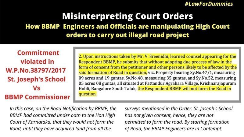 This is the beginning of several legal challenges for BBMP in this motivated illegal road project in Whitefield