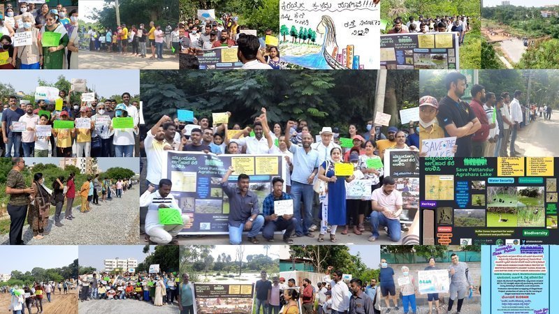 Whitefield residents and many supporters from all across Bengaluru turned out in a riot of colours and enthusiasm... for The Third PATTANDUR AGRAHARA HUMAN CHAIN PROTEST, against illegal road project on Lake Buffer Zone!