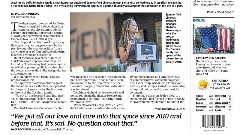 ➡️ Continue to go to the movies at Summerfield Cinemas to support the Tocchini family and team - the theater operator’s local business (Santa Rosa Cinemas).