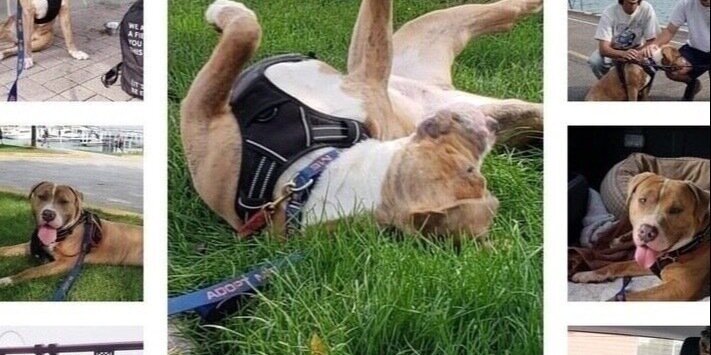 ”Cowabunga's face matches his name perfectly. He has that slight mischievous look in his eye coupled with a good boy smile. Cowabunga is both X Games athletic and cream puff softie once he settles and gets some fresh air. He is young and bored and getting stressed living in a kennel day after day without much enrichment.”