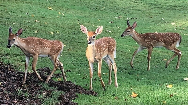 The deer population seems healthy, the triplets (pictured) are late arrivals born the last week in June. They too make their home along the Four Mile Creek Greenway and the Gillespie property.