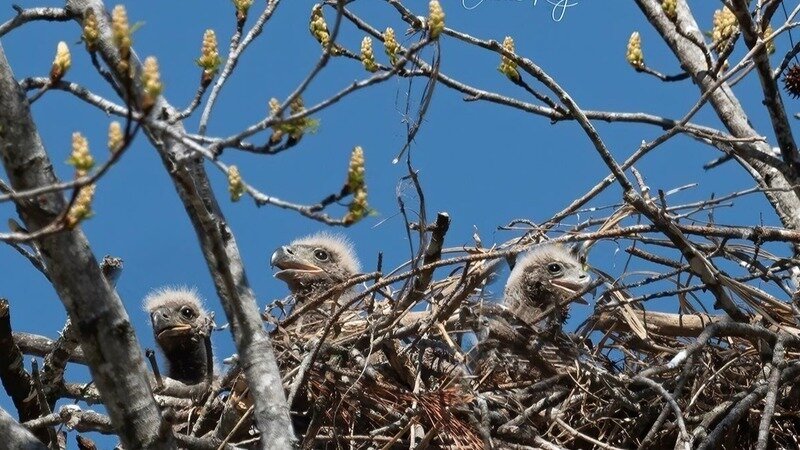 This photo by local photographer Emilie Knight shows three eaglets born to Piper and Glen in 2022. Knight says she has been photographing the eagles for the last four years. (Photo by Emilie Knight)