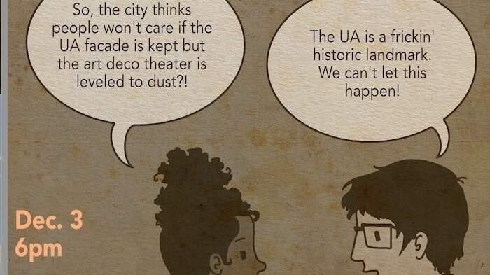 ➡️ We're rallying people to the Berkeley City Council meeting this Tuesday and, more importantly, to the zoning board hearing on 12/12, where the board will pretend to have a public hearing seeking input but in actuality will rubber-stamp approval of the housing tower that requires the destruction of the magnificent art deco United Artists theater in downtown Berkeley.