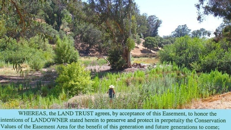 Big picture, we are asking for time and due process for public input before $5.35MM in funds are spent unnecessarily destroying 63 trees and the environment...violating the agreement to "preserve and protect the conservation value of natural, open space, scenic and wildlife habitat conditions"...