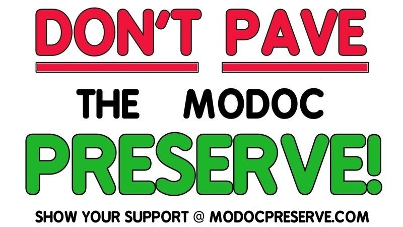 Please print out this "DON'T PAVE THE MODOC PRESERVE" window sticker and display along with your favorite causes...