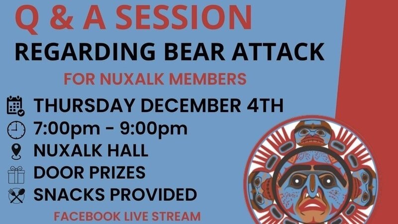 On December 4, at 7pm Pacific Standard Time, the Nuxalk Nation will hold an information session about the bear family in person and on Facebook Live. Join them for updates.