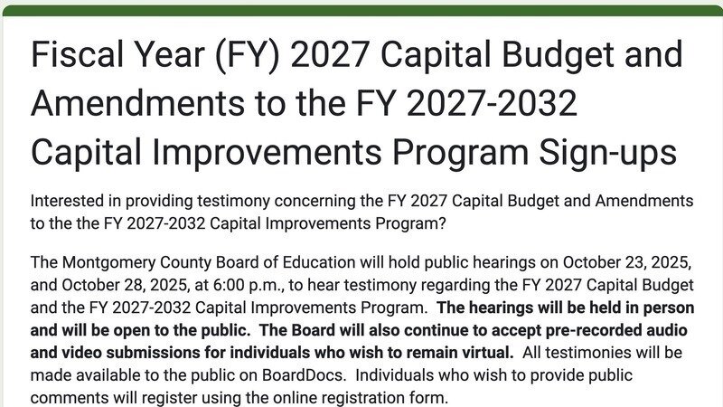 SIGN-UPS just opened to speak at the the Board of Ed public hearings on the school facilities in the budget, on Oct 23 and Oct 30, at 6pm, in Rockville (BoE headquarters in Carver Center). It was apparent at this morning's Board of Ed meeting that we have to continue to advocate for the pool. The Superintendent mentioned our powerful advocacy, but the Board must be convinced, and will be looking for cuts.