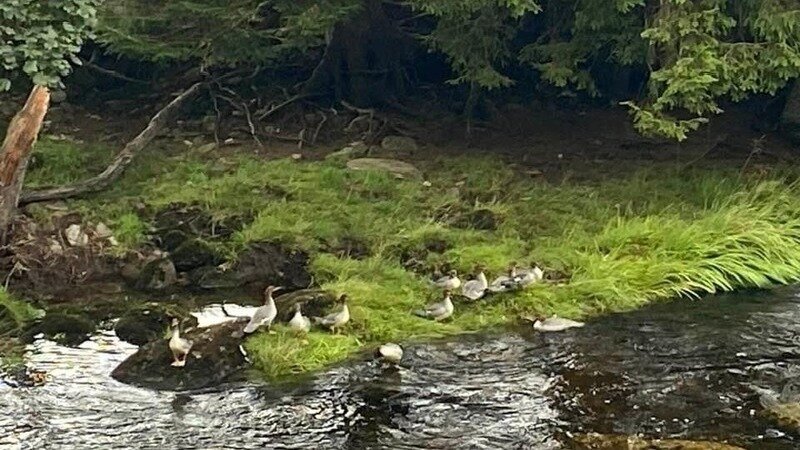 This weeks update picture is a group of 11 Goosanders taken by a supporter on the river in Betws-y-Coed a couple of weeks ago. Considering that between now and 2025 this group alone, if all hens which they appear to be by the coloration, will account for 220 fish daily, on an average of 20 each. By the end of 2024 according to the daily calculation they will have accounted for at the least a total of 102,300 fish, in addition to breeding on average 12 chicks each, to reach a total of 132 more of them to predate on the diminishing stocks., working out at approximately 2,640 fish daily, 963,600 by 2025! This is one group in a small area, consider the situation throughout Wales ? and worse still UK wide?, and these figures do not include the predation by 'Cormorants'.