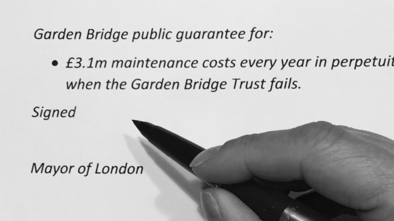 Tonight at People's Question Time in Brent, London mayor Sadiq Khan avoided answering a critical question about the Garden Bridge guarantee which would expose a potentially broken promise that he made earlier in the evening about not committing any more public funds to the proposed private development. If he refuses to sign the guarantee, then he would effectively kill off the Garden Bridge. But does he want to be known as the man who scrapped former mayor Boris Johnson's last white elephant? He should do - he'd be hailed as a hero.