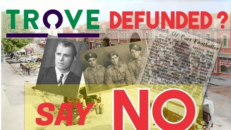 TROVE is OUR National Repository resource for photos, news article digitization, stories, images, videos, magazines, books, film, articles, it must be resourced for our Cultural and National Heritage.