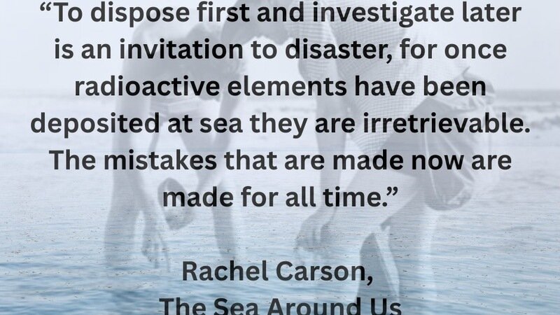 Today is World Ocean Day. In her book “The Sea Around Us” Rachel Carson wrote "To dispose first and investigate later is an invitation to disaster, for once radioactive elements have been deposited at sea they are irretrievable. The mistakes that are made now are made for all time."