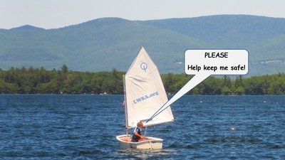 Lake Winnipesaukee is a precious resource that is shared and enjoyed by motor boaters, sailors, kayakers, canoers, paddleboarders, tubers, swimmers . . . . and more. It is a wonderful playground for families and for children of all ages! Take, for example, the Lake Winnipesaukee Sailing Association's youth sailing school - - one of the largest sailing schools in the Northeast. Every summer, they put over 300 kids on the water in small boats, like the youngster pictured above. High-speed motorboats, increased boat traffic, and the presence of too many inexperienced boaters create a perfect storm of increased danger for people like the young sailor in this picture. We must do everything we can to keep the Lake safe for all who use it.