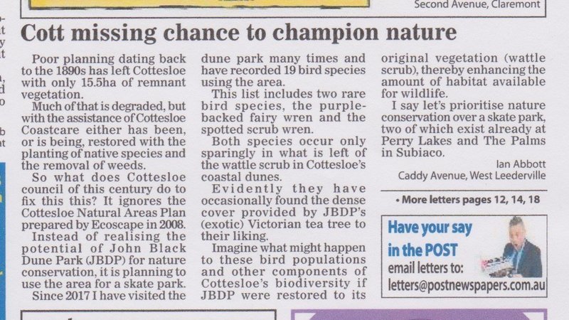 Petition updatePRIORITISE CONSERVATION OVER CONCRETE - PUT A SKATE PARK ELSEWHERECottesloe missing chance to champion nature