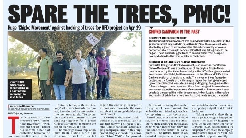 Citizens of Pune organise Chipko Movement on 29th April to save 7500 trees