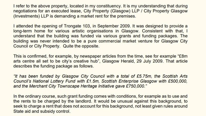 Annoyingly you can only upload 1 image at a time, so I will post the second page of the letter that MP for Glasgow East John Brady has sent to City Property and GCC, tomorrow.