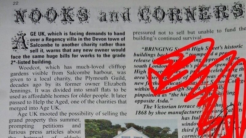 Petition updateSave Woodcot in Salcombe. Ask AGE UK, who got it for free, to pass it on.Private Eye! Finally…..