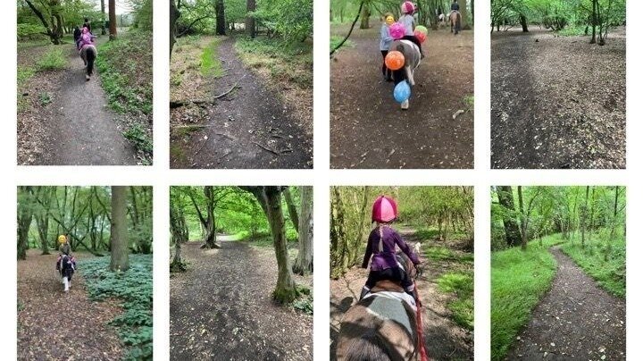 The image today shows some photos of us riding in the woodland a few years ago side by side with a photo taken this week of the same area.