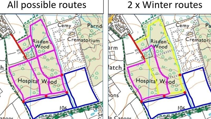 We were asked by Natural England to submit in advance some details about where we wanted to ride and the volume of numbers, which we have done. The two maps show the main paths we have taken to date and our proposal for two winter routes to minimise poaching and spread the load across different routes at the time of year when we know that the ground is much softer and at risk of damage.