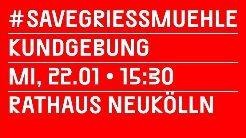 Die Griessmuehle ist akut bedroht. Zum 31. Januar hat der Eigentümer (die SIAG Property II GmbH) durch den Verwalter (S IMMO Germany GmbH) den Vertrag auslaufen lassen. Wir brauchen Eure Unterstützung!