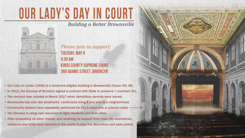 May 9th at NY Supreme Court 360 Adams Street Brooklyn, NY we go before the judge to make our case to save Our lady Of Loreto Church!