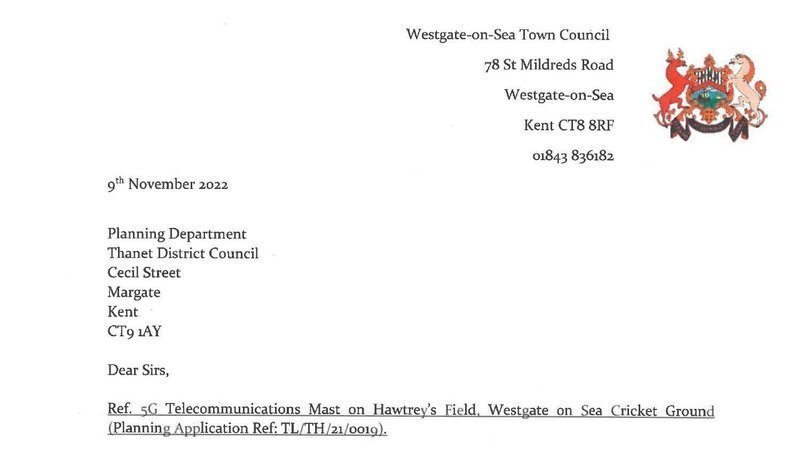 Yesterday, we became aware of a letter from Westgate Town Council (WTC) to Thanet District Council (TDC - the local planning authority), which I have included with this update as an attachment.