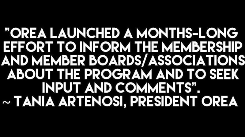 "OREA launched a months-long effort to inform the membership and member boards/associations about the program and to seek input and comments"(1) ~ Tania Artenosi, President OREA