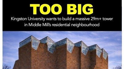 We the undersigned call upon the university to reconsider its planning application for a huge unsightly 30 metre tall massive building on the banks of the Hogsmill.