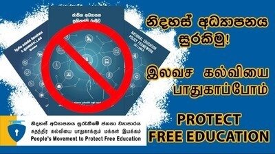 රජය විසින් යෝජිත ජාතික අධ්යාපන ප්රතිපත්ති රාමුව (2023-2033) මගින් අපගේ නිදහස් අධ්යාපනය වෙත එල්ල වී ඇති තර්ජන පිළිබඳ වැඩි විස්තර දැන ගැනීමට කරුණාකර පිවිසෙන්න : https://protectfreeeducation.wordpress.com