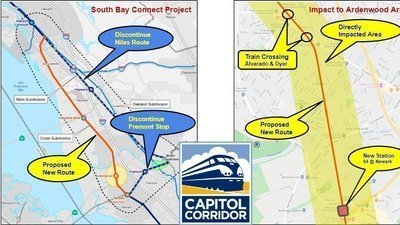 - South Bay Connect Project is relocating Capitol Corridor to Coast subdivision, passing residential areas in Union City, Fremont, and Newark, consisting of many minorities and immigrants