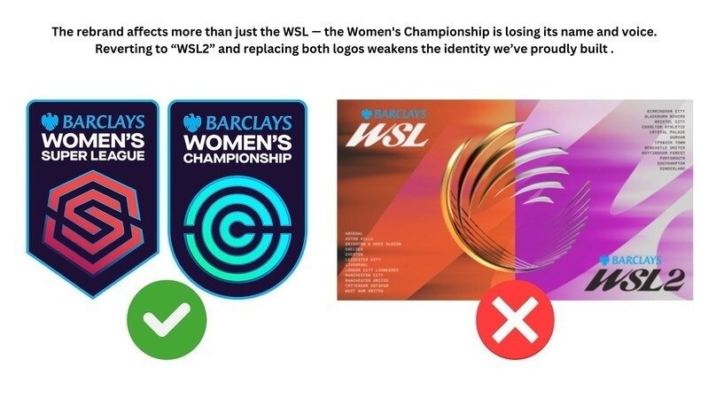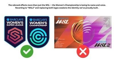 Let the WPLL, Barclays Women's Super League and Women's Championship know that you stand for progress, not PR packaging. Let’s keep the Barclays Women’s Championship strong and proudly distinct — and let’s make sure the visual identity matches the passion behind the game.