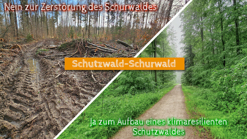 - Aktuell gibt es eine Aktion des Verbandes der Region Stuttgart - Landschaftspark, bei der Gemeinden und deren Bürger dazu aufgerufen werden, sich in einer digitalen Karte am Freizeiterlebnis der Region noch bis zum 10. März 2024 zu beteiligen. Auch auf dieser Karte können Sie ihre Meinung kundtun und einen Schutzwald-Schurwald einfordern. Hier geht es zur interaktiven Karte: https://www.naherholung-region-stuttgart.de