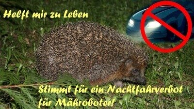 Es bricht uns das Herz, zu sehen, dass so viele unschuldige Igel verletzt oder gar getötet werden, nur weil sie zur falschen Zeit am falschen Ort unter diese modernen Mähgeräte geraten. Leider hat die Landesregierung das Nachtfahrverbot führ Mähroboter nicht eingeführt, doch auf kommunaler Ebene wäre es trotzdem möglich.