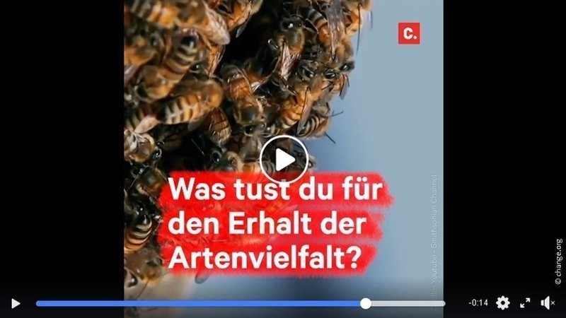 Liebe Unterstützer/innen! Change.org hat ein neues eindrückliches Video zum massiven Artensterben erstellt. Eine Million Arten sind vom Aussterben bedroht, wir können nicht oft genug auf dieses Drama aufmerksam machen. Bitte verbreitet deshalb jetzt das Video: https://www.facebook.com/watch/?v=391446784794390
