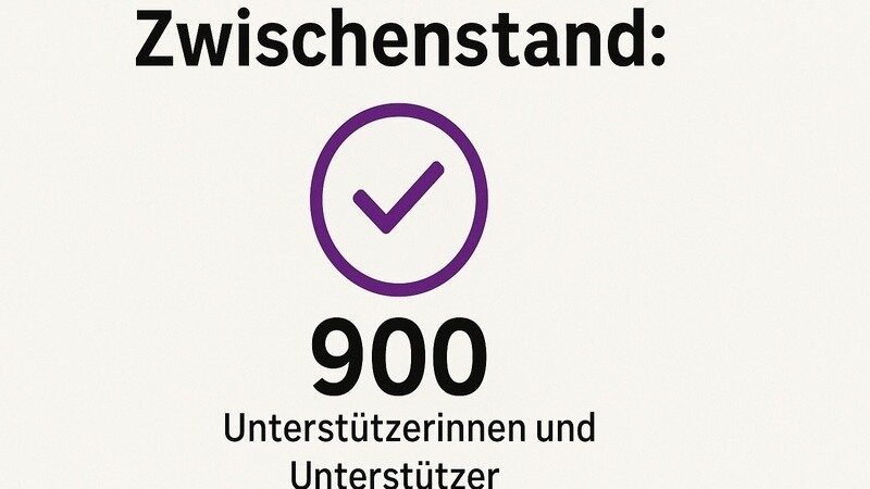 Das nächste Etappenziel liegt bei 1.000 Unterschriften – es fehlen also noch rund 100 Stimmen. Jede weitere Unterstützung bringt uns diesem Ziel näher.