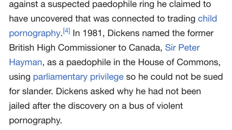 Tory MP Geoffrey Dickens had written out a full report to parliament in regards to a Westminster pedophile ring. It was kept secret from the public for ‘national interest’. Due to freedom of information act, letters have been released proving Margaret Thatcher knew about it. Nothing was ever done the accused was proven guilty and still didn’t lose his ‘lord’ title. Geoffrey Dickens died without a single one of the pedophiles being sentenced to jail. It was reported in 2018 that the dossier report was ‘lost’ with no explanation from Leon Brittain after the investigation was finally re opened. The government is clearly not taking action and it makes the general public sick knowing our country was being government by high profile pedophiles. Did his dossier expose Jimmy Savile? Is this why the report has been ‘lost’?, I don’t know about you but I want answers and action..... NOW!