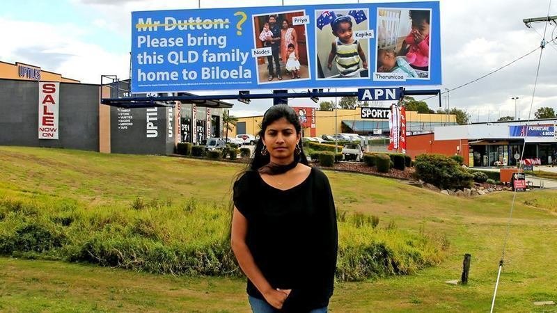 After Border Force snatched Priya and her family from our town in March, Vashini went to the Brisbane office of Mr Dutton’s Department of Home Affairs. She held up a picture of her friends and leafleted passers by.