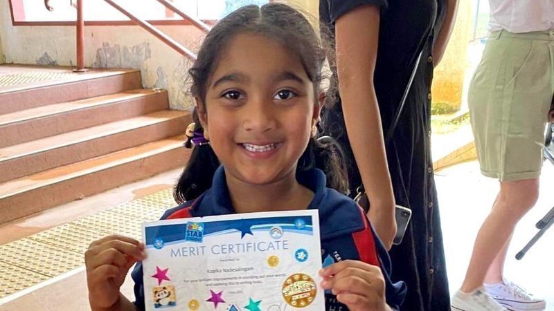 Kopika is a brave, bright little girl. She was so proud to receive this merit certificate for “brilliant improvement in sounding out words and applying this to writing tasks” at school.