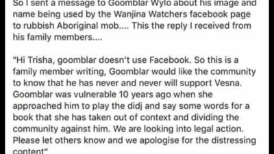 Stop White Supremacy being promoted by Vesna Tenodi of Wanjina Watchers Art