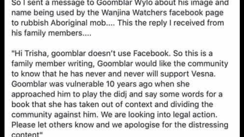 Vesna Tenodi is causing extreme division between Aboriginal families, their Communities that she has slandered, she is causing extreme division between race in general within our Country, she is appearing as though she is trying to create a White Supremist cult to support her in trying to achieve a White only country.
