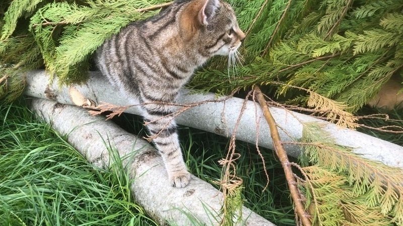 As promised, below is a very encouraging video of Finlay emerging from a natural denning/resting area that he has chosen to use. This is exactly what we want to see. He is of course provided with wooden den boxes which he has happily used, but it is fascinating that he is now seeking out more natural dens sites like this one, which is a pile of logs covered in conifer brash. Look how he uses the cover to conceal himself and again you can see his fantastic wildcat markings and blunt ringed tail. Just look at those eyes when he peers out 18 seconds in. We are extremely encouraged by his continued development.