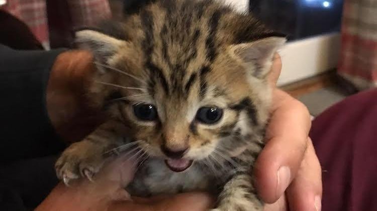 Finlay would have born a year ago this week and would have been happily tucked up in a den, looked after by his fiercely protective mother. However unfortunately at 3 weeks old his life was turned upside down and in circumstances that are unknown, his mother must have been killed and he was made an orphan. Driven by hunger and with his eyes barely open, he made the decision to leave the safety of his den and try and find his mother. His journey coincided with a stormy period of torrential rain. We don't know how long he had spent out in the storms but he was found, completely sodden and close to death in the Highlands. Luckily, John and Angela who found him, gave him much needed care and warmth, got him to the vets the next day and started the full time job of bottle feeding and monitoring him. John and Angela knew straight away that the kitten they had found had the tell tale signs of a Scottish wildcat and thankfully they got in touch with us. We immediately went to see him and he was passed into our care so that his long process of rehabilitation could start, with the ultimate goal of getting him back to the wild where he belongs.